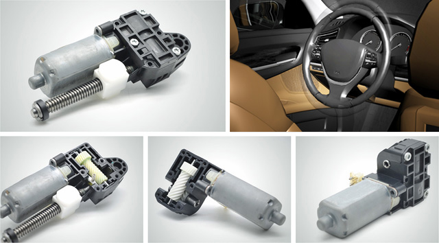 項(xiàng)目說明:兆威通過對(duì)自動(dòng)方向盤調(diào)節(jié)機(jī)構(gòu)齒輪箱進(jìn)行分析及設(shè)計(jì),調(diào)整自動(dòng)方向盤調(diào)節(jié)機(jī)構(gòu)齒輪箱的結(jié)構(gòu)和提高齒輪的加工精度。通過將齒輪助力式的電動(dòng)機(jī)和減速機(jī)構(gòu)的小齒輪相連,直接驅(qū)動(dòng)齒輪助力轉(zhuǎn)向,可降低崎嶇地形反饋到方向盤上的力度和角度變化,從而降低敏感度,提高車輛的穩(wěn)定性,不晃動(dòng)。